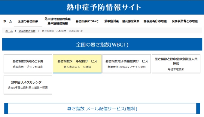 ◆ WBGT情報のメール配信登録による注意喚起